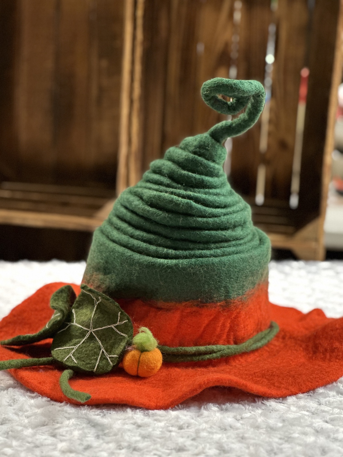 This beautiful creative pumpkin hat is handmade in Nepal.