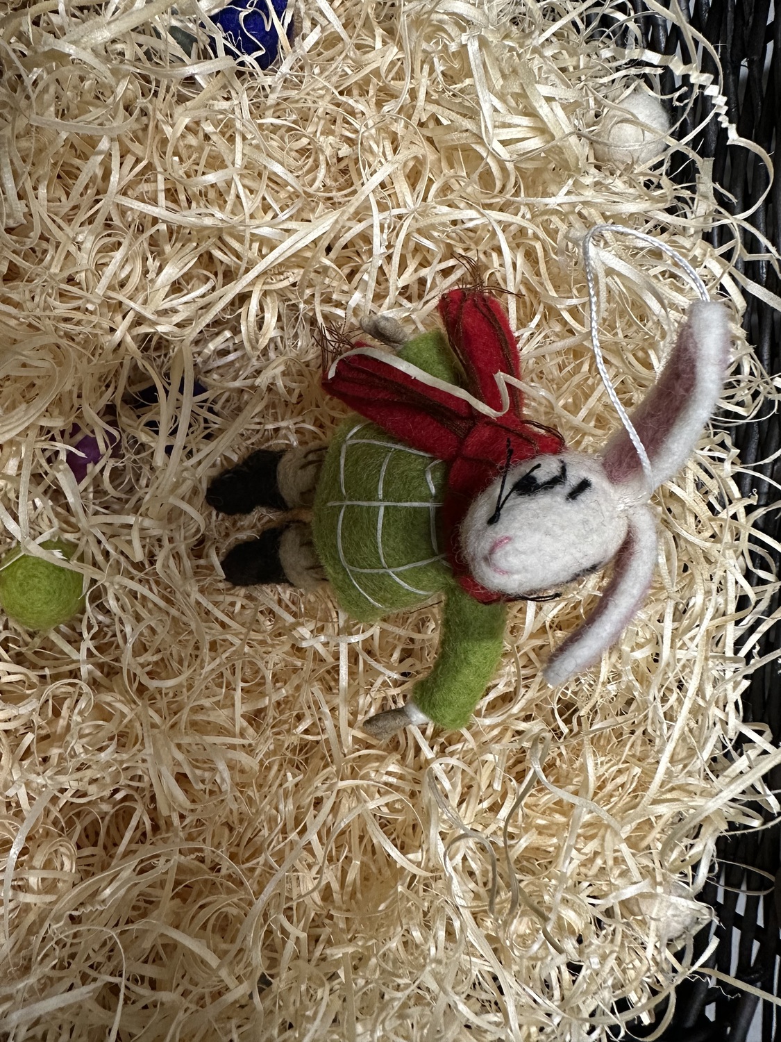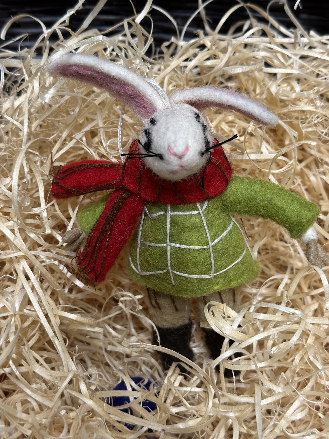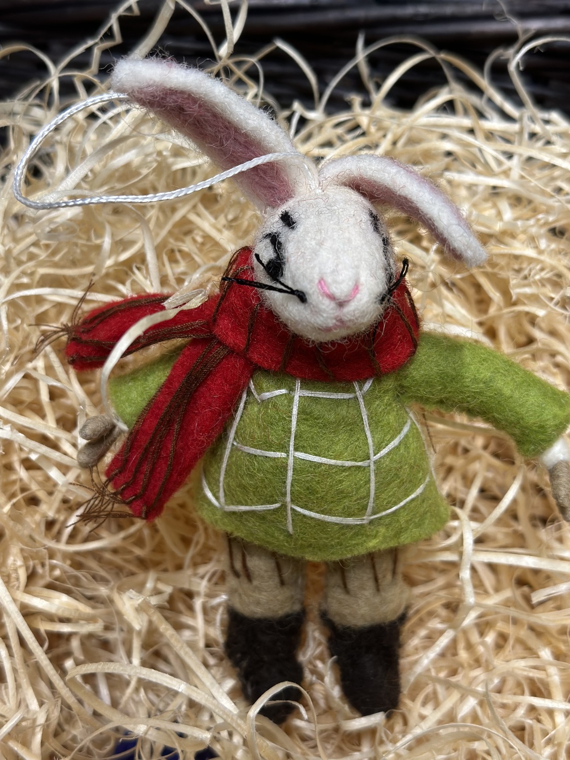 Winter rabbit with scarf is going to bring warmth in someone’s house .