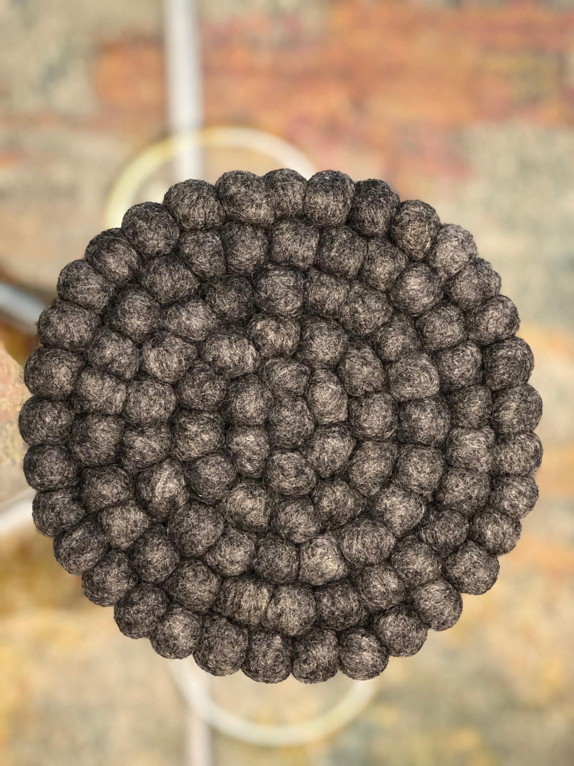 THIS BEAUTIFUL GREY COASTERS IS 10 CM AND IS ALL STITCHED WITH NYLON MAKING IT EXTRA STRONG AND IT CAN BE HAND WASHED.THE BALL SIZE IS 1.5 CM.