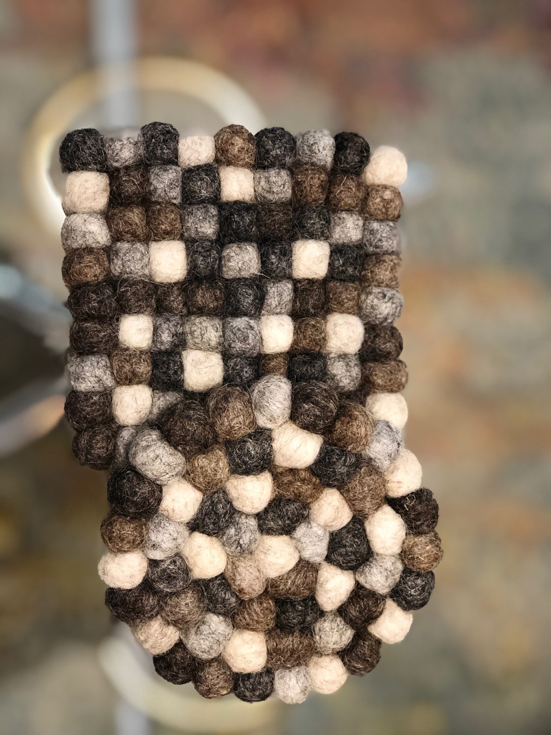 THIS BEAUTIFUL GREY PEBBLE COASTER IS 10 CM AND IS STITCH WITH NYLON THREAD MAKING IT EXTRA STRONG AND HEAT PROOF . IT CAN BE HAD WASHED