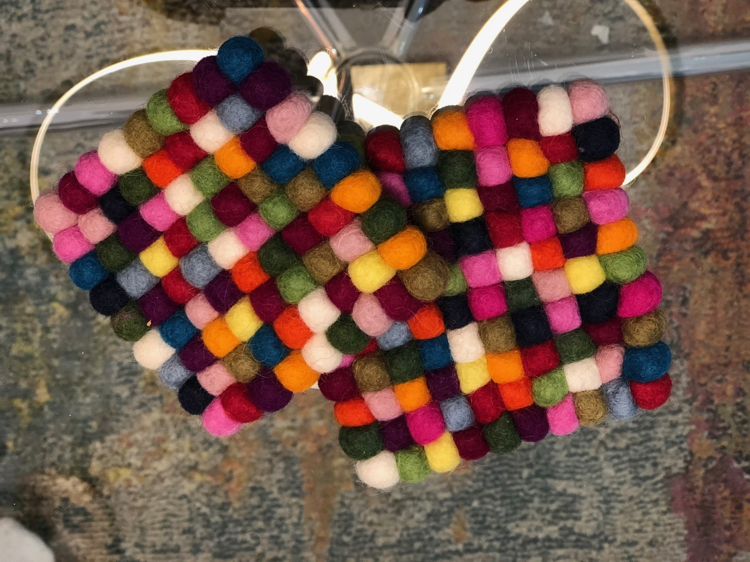 THIS BEAUTIFUL MULTICOLOUR COASTER IS 10 CM AND IS STITCH WITH NYLON THREAD MAKING IT EXTRA STRONG AND HEAT PROOF . IT CAN BE HAD WASHED