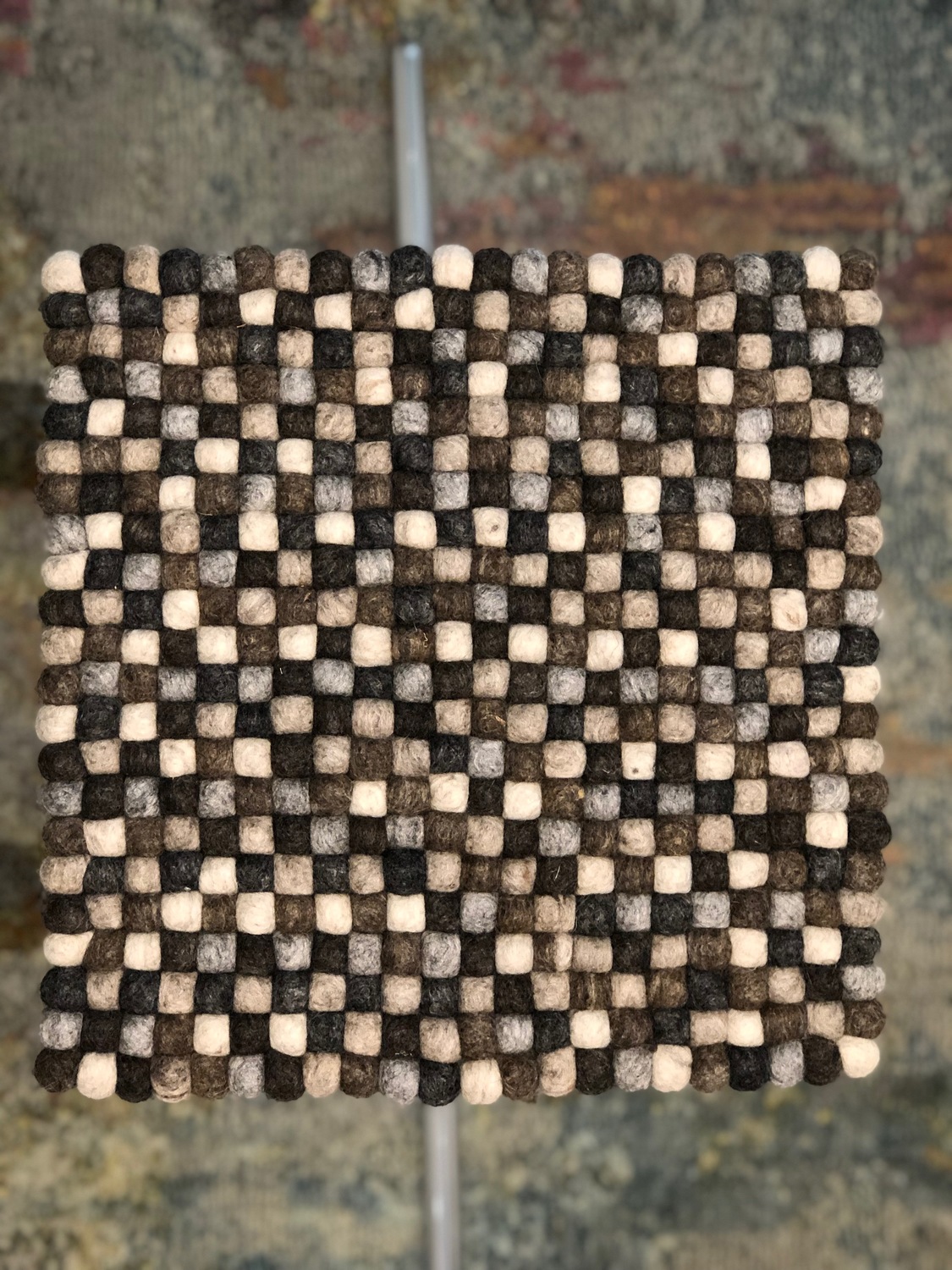 THIS BEAUTIFUL GREY PEBBLE COLOUR MAT/RUG IS 40 CM AND IS ALL STITCHED WITH NYLON MAKING IT EXTRA STRONG AND IT CAN BE HAND WASHED.THE BALL SIZE IS 2 CM. GOOD FOR PUTTING BIG POTS, USE ITFOR COFFEE TABLE , CAN BE USE AT MAT FOR BATHROOM OR MAT FOR SITTING AND USE AS A RUG FOR KIDS ROOM .
